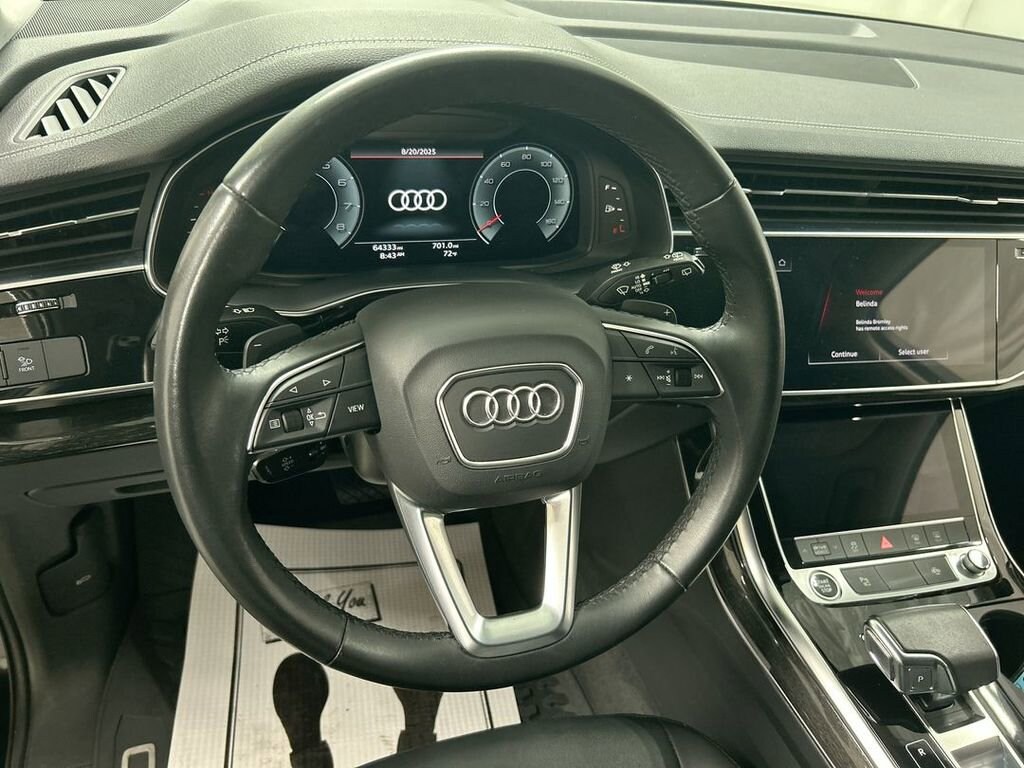 2023 Audi Q7 45 Premium quattro 8-Speed Automatic with Tiptronic 2.0L 4-Cylinder TFSI Mythos Black Metallic, Black Interior, Heated Seats, Heated Steering Wheel, Three Zone Auto Climate Control, Audi MMI NAV Plus, Wireless Charging, Top View Camera System With Virtual 360 View
