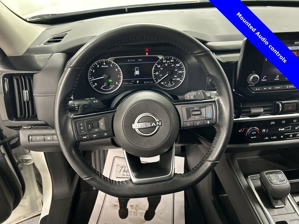 2023 Nissan Pathfinder SV 4WD 9-Speed Automatic V6 **ONE OWNER**, **NON-SMOKER**, **Remote Starter**, **Heated Seats**, **Bluetooth Equipped**, Nissan Connect, Sirius XM Radio, Pro Pilot Assist, Power Driver Seat, Rear Sonar, Apple Car Play, Android Auto, 4WD, Heated front seats. Pearl White Tricoat