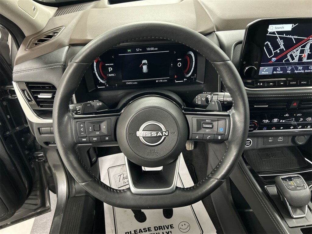Powered by a 1.5L I3 Turbocharged engine, this Rogue Platinum delivers an impressive 201 horsepower and an exceptional fuel economy of 28 city/34 highway MPG, making it the perfect companion for your daily commute or weekend adventures.