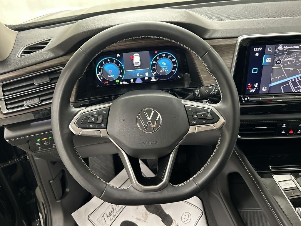 The Atlas has an infotainment system that is easy to use and intuitive, and it allows for swiping and pinch zooming. Apple Car Play is awesome! Surprisingly, some manufacturers have not integrated this feature at this time. The digital instrument panel has a very nice, modern look, and it offers 5 or 6 different views. One of the really cool things about the Atlas- you can display the nav map in the middle of the instrument panel. Additionally, you can make the map bigger and the gauges smaller, which allows you to see more map detail- a really nice option. The car even has an altimeter, which is really cool to me (I’m a pilot by trade). Not so much for my wife…